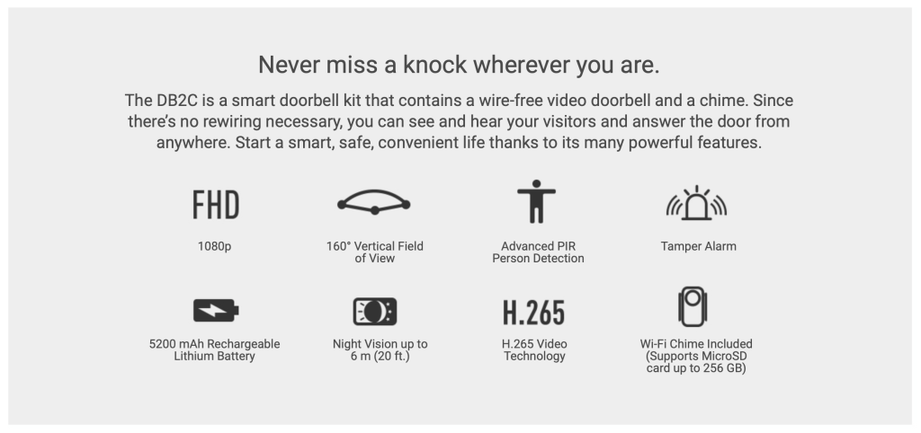 - Wi-Fi Chime Included (Supports MicroSD card up to 256 GB)